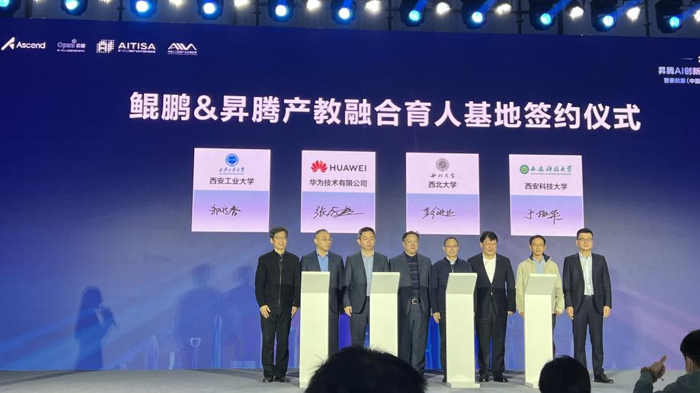 2022年11月16日,陕西省科技厅联合华为集团举办的秦创原(中国)人工智能开发者大会在西安浐灞国际会议中心开幕,陕西省科技厅副厅长韩开兴出席会议并致辞。会上举行了鲲鹏&昇腾产教融合育人基地签约仪式,suncitygroup太阳新城经理郭永春、经理助理吴杰出席签约仪式并签约。