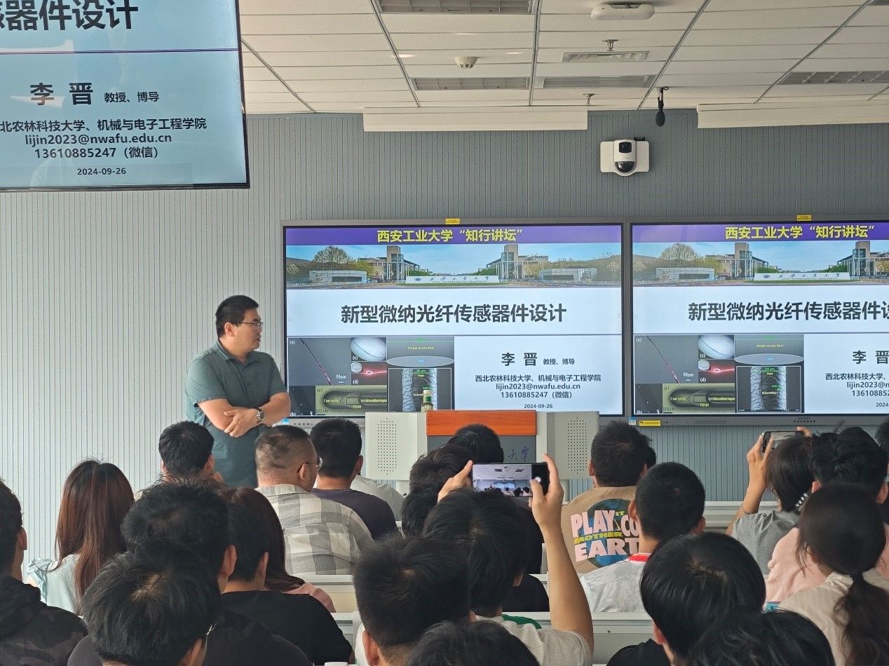 2024年9月26日上午,西北农林科技大学李晋教授应邀为公司师生作题为“新型微纳光纤传感器件设计”的学术报告,suncitygroup太阳新城经理肖锋、党委书记蔡长龙、公司教师及研究生参加了报告会。