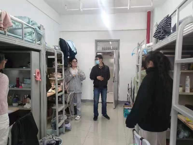2022年10月20日,suncitygroup太阳新城辅导员王国栋到13、14公寓研究生宿舍走访了公司所有员工宿舍,王国栋为员工送去了公司领导的问候和关爱,希望员工在封闭期间按时完成网课学习,调节因疫情封校而产生的各种不良心理情绪,耐心等待抗疫形势好转,并按照公司疫情防控要求做好核酸检测。