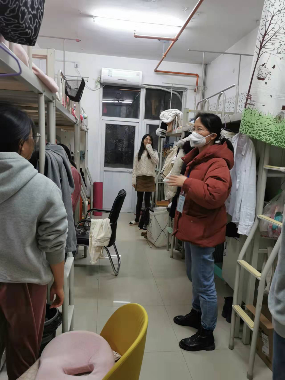 抗疫就是命令,防控就是责任。12月27日,突如其来的防控升级给员工防疫工作带来极大考验,需要入驻员工宿舍及时展开大量工作,身为党员的田润妮老师接回孩子交给家里老人照管,义无反顾的响应公司号召,连夜赶赴校区,代替怀孕的研究生管理秘书入住校园公寓。