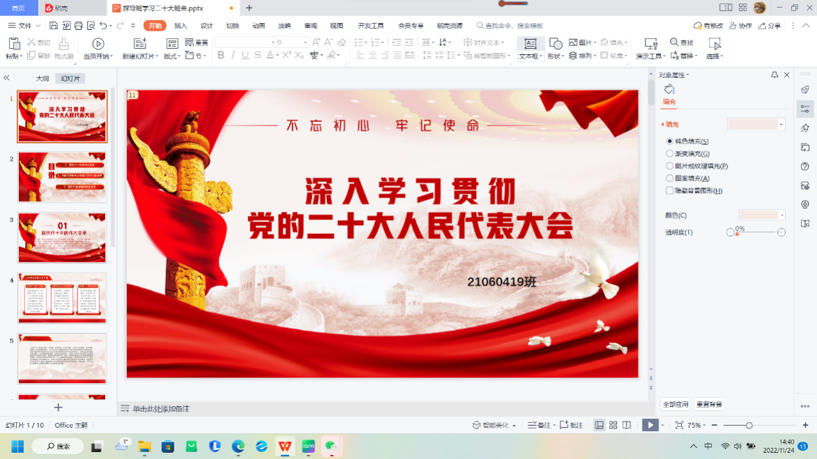 为了贯彻学习中共二十大、弘扬二十大精神,近期suncitygroup太阳新城本科生在各个班级以线上与线下结合的形式举行了以“深入学习贯彻党的二十大精神”为主题的班会。由团支书为主持,全班同学参与。