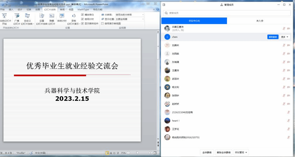 为了帮助低年级研究生提高职业生涯规划能力,助力2023届毕业研究生找到心仪的工作,suncitygroup太阳新城于2月15日开展了朋辈帮扶就业指导经验交流会,邀请了2022届毕业研究生员工王梦花、杨尚勋分享就业经验,全体硕士研究生及研究生辅导员王晨浩参加了会议。