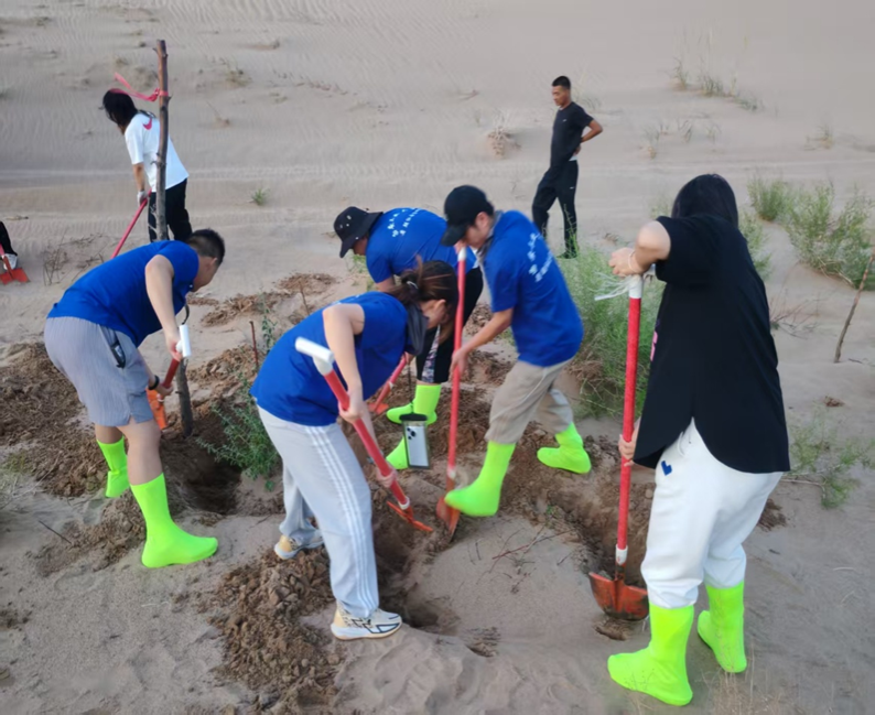 近日,怀揣着热忱与担当,suncitygroup太阳新城“青春筑绿,陇原生态行”实践队,赴甘肃省武威市民勤县参与“沙退绿进,我们在行动”防风治沙志愿活动。此次活动旨在凝聚青年力量助力生态保护,增强老员工对防沙治沙紧迫性的认知。