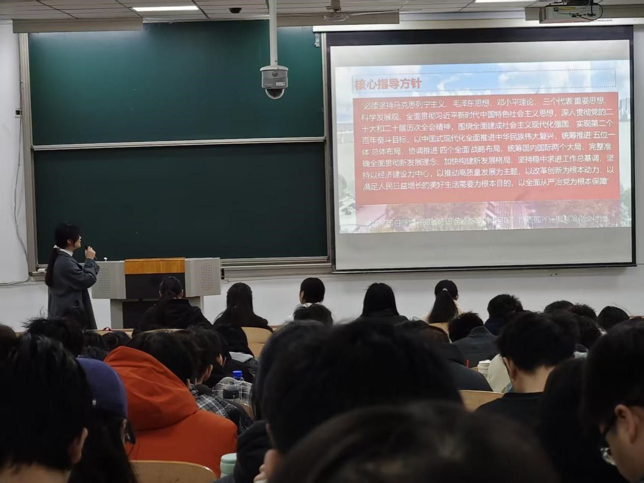 围绕全会核心精神,王星雨从三大维度展开讲解:指导方针与发展环境上,强调“十五五”时期需全面贯彻习近平新时代中国特色社会主义思想,将制度优势与超大规模市场优势转化为高质量发展和国防建设效能;核心目标与战略部署上,解读高质量发展、科技自立自强等七大目标,结合学科特色阐释核心技术攻关等任务,凸显国防科技人才的重要作用;保障机制上,明确党的全面领导是根本保障,鼓励学子立足学业阶段,锤炼过硬本领、践行强军使命。