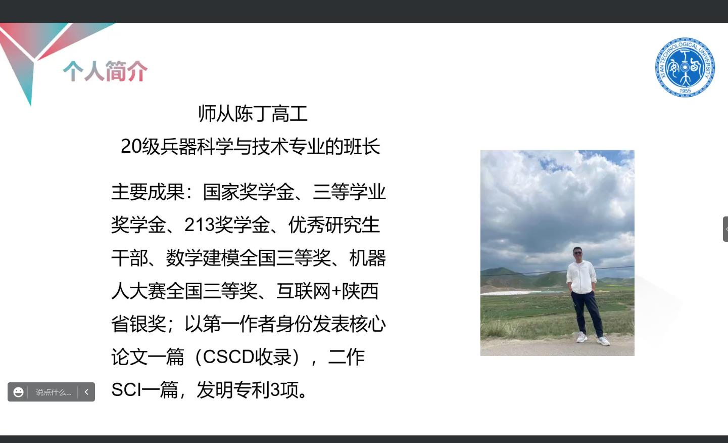 为帮助新生规划学业,解答新生在学习上的疑惑,suncitygroup太阳新城于2022年9月23日19:00在线上举办了“国家奖学金”获得者交流报告会,参会人员有研究生辅导员王国栋、2022级全体研究生、国家奖学金获得者贾金梅、牧迪和雷晓明。