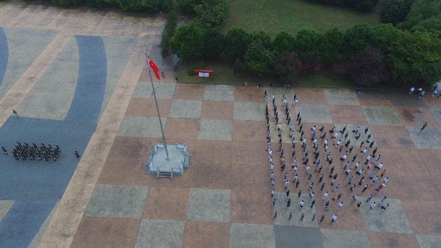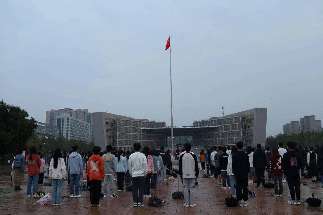 在全体师生的注目礼下,英姿飒爽的国旗队迈着铿锵有力的步伐护送鲜艳的五星红旗进场来到国旗台前。“奏国歌,升国旗,向国旗行注目礼!”在嘹亮的歌声中,五星红旗冉冉升起。全体观礼人员肃穆敬礼,自豪与骄傲之情油然而生。