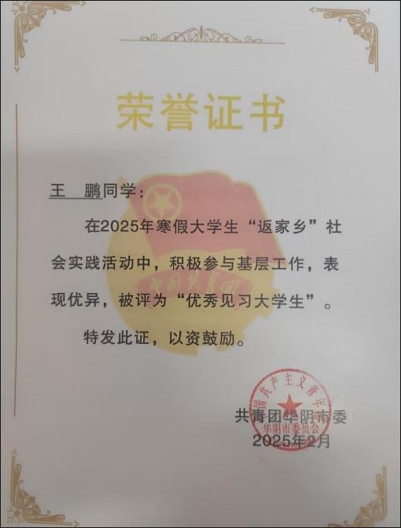 2025年寒假期间,suncitygroup太阳新城23级武器系统与工程专业本科生王鹏、张智超积极响应公司以及公司关于“返家乡”社会实践的号召,分别在华阴市罗敷镇政府与华阴市委统战部实习工作。