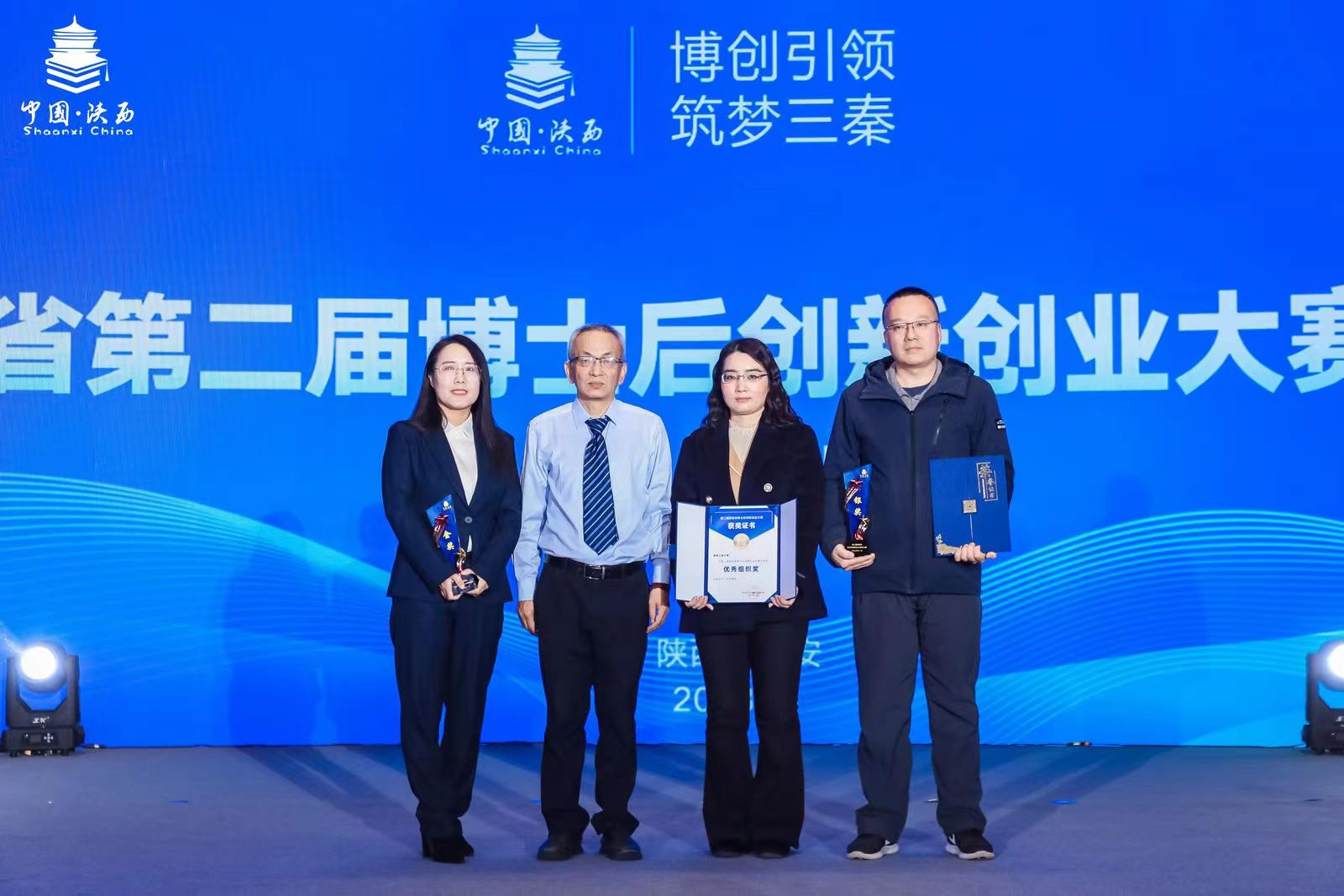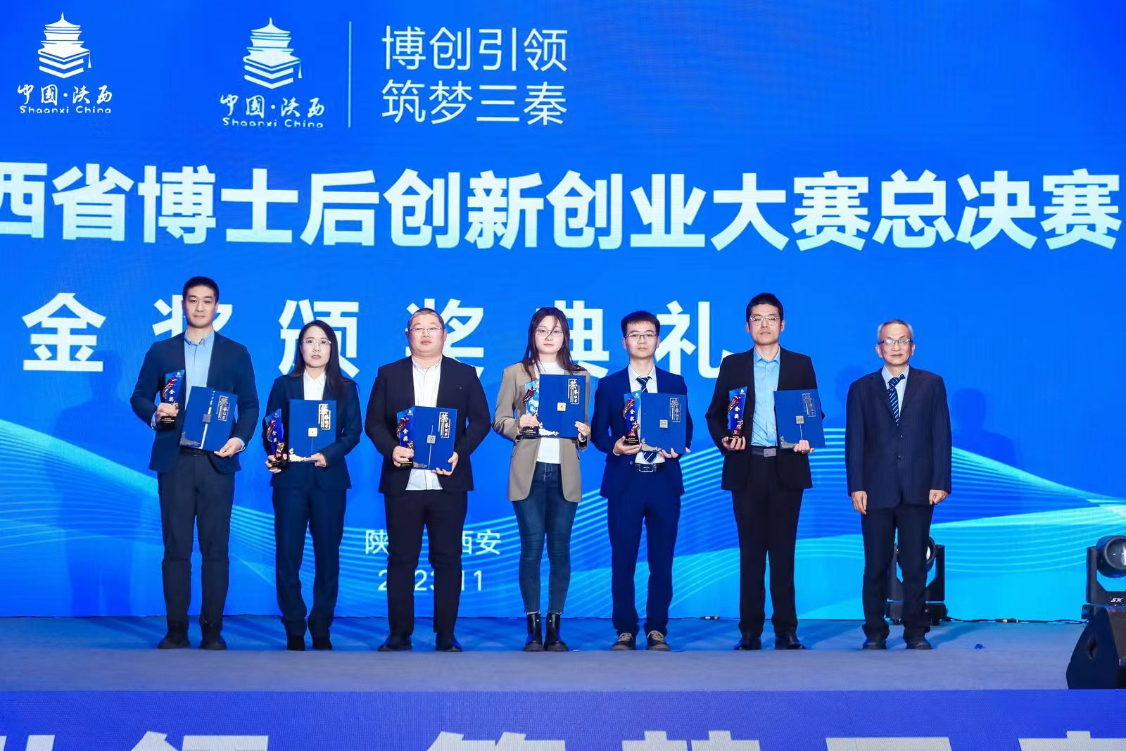 2023年11月30日陕西省第二届博士后创新创业大赛于西安市隆重开幕,本届大赛以“博创引领、筑梦三秦”为主题。在高端装备制造及海洋开发与应用组,经过激烈角逐,公司由王琳、刘雪莲、肖博等几人组成的博士后团队,夺得该组别 “金奖”。